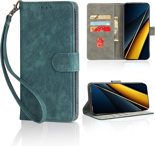 Xiaomi Poco X6 Pro 用 ケース Xiaomi Poco X6 Pro 用 手帳型 カバー 財布型 【NOUKAJU】 カードポケット付き 高級 PUレザー 手触りが良い 落下防止 衝撃吸収 耐摩擦 全面保護 耐磁性RFID機能 マグネット式 カード収納 スタンド機能 軽量 薄型 ストラップ付き スマホケース (グリーン) a