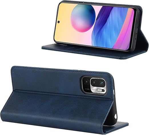 対応Xiaomi Redmi Note 10 JE XIG02 / Redmi Note 10 JE/Redmi Note 10T 手帳型 シェルノートブックタイプ保護カバーノートブックカード収納側マグネットブラケット機能互換性のある耐衝撃性軽量モダンシンプルファッションPUレザー折りたたみ式フル保護カバー(ダークブルー) a