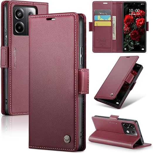 RicYeel Xiaomi Redmi Note 13 Pro 5G 対応 ケース 手帳型 財布型 カードポケット付き 高級レザー レッドミ Note 13 Pro 用 衝撃吸収 スマホケース 全面保護 カード収納 スタンド機能 携帯カバー 磁気バックル付き ストラップホール付き (レッド) a