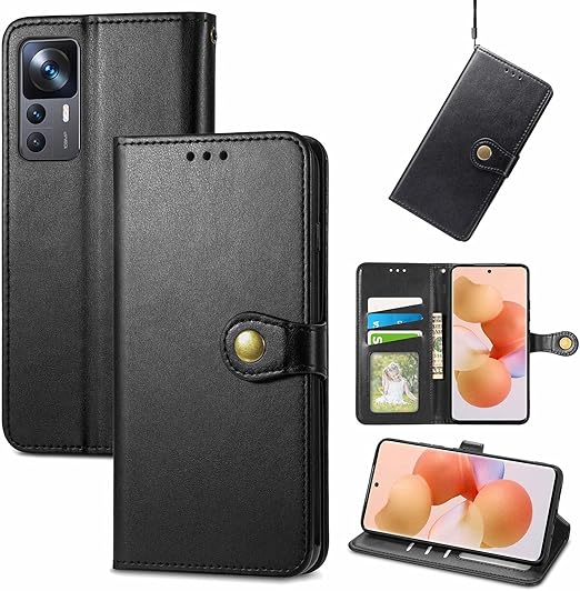 for Xiaomi 12T/Xiaomi 12T Pro ケース 手帳型 ビジネスフリップノートレザーケースシンプルなレトロなファッション携帯電話ケース防水と汚れた携帯電話ケース多機能財布収納付きスタンド携帯電話シェルPUレザー保護カバー耐久性のある摩擦(黒) a