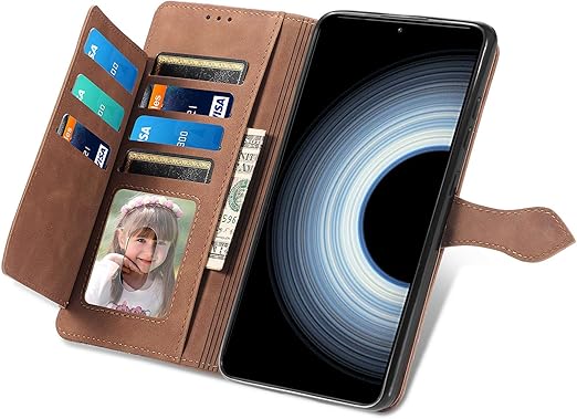 for Xiaomi 12T/Xiaomi 12T Pro ケース 手帳型 ビジネスフリップノートレザーケースシンプルなレトロなファッション携帯電話ケース防水と汚れた携帯電話ケース多機能財布収納付きスタンド携帯電話シェルPUレザー保護カバー耐久性のある摩擦(ブラウン) a