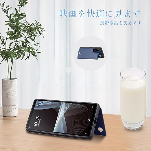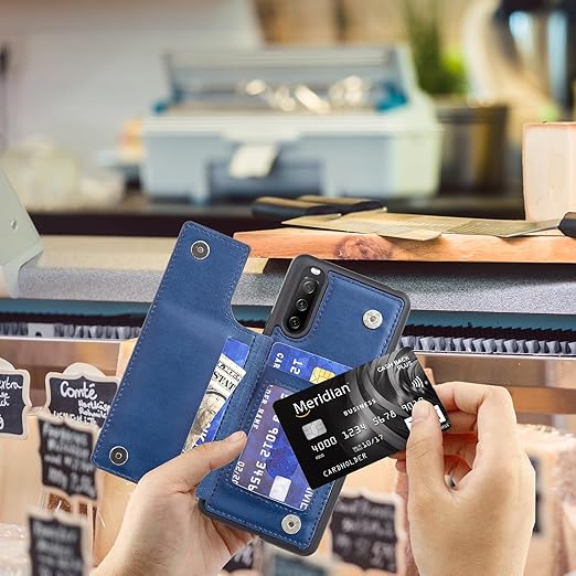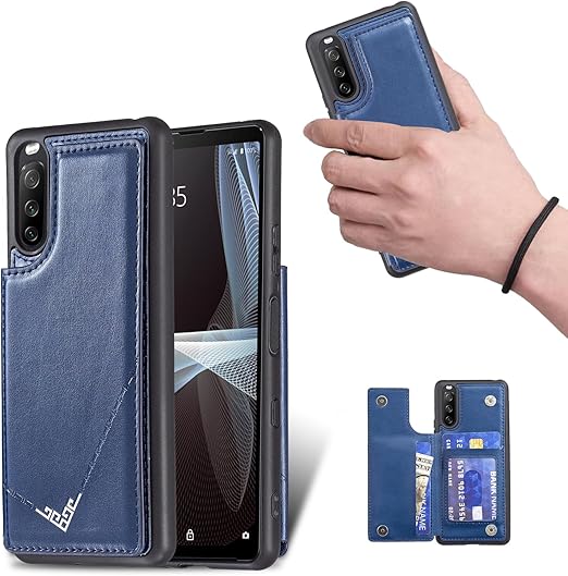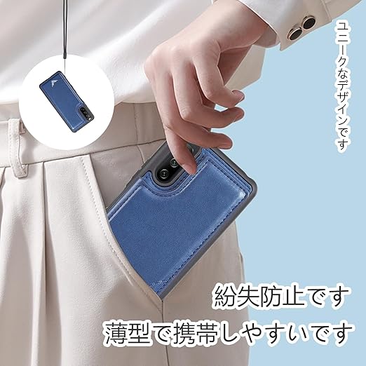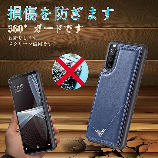 for Xperia 10 III SO-52B SOG04 / Xperia 10 III Lite エクスペリア 10 III ケース スタンド機能 ケース ICカード収納 カード収納 背面カード収納 左と右のを反転、シンプルなレトロなファッション、防水と防汚電話ホルダー、多機能財布収納付き(ブルー) a
