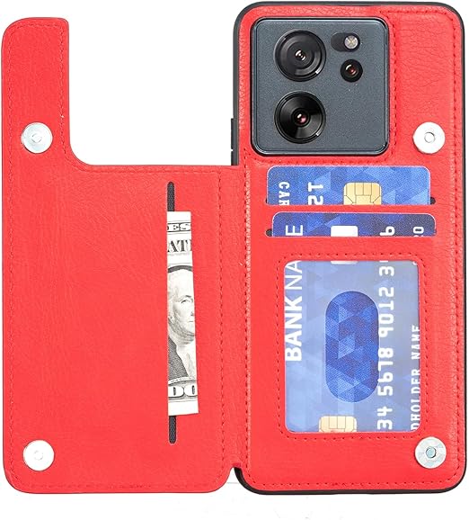 for Xiaomi 13T / Xiaomi 13T Pro ケース スタンド機能 ケース ICカード収納 カード 背面カード収納 左と右の電話ケースを反転、シンプルなレトロなファッション、防水と防汚電話ホルダー、多機能財布収納付き、PUレザー、TPUソフトインナー(赤) a