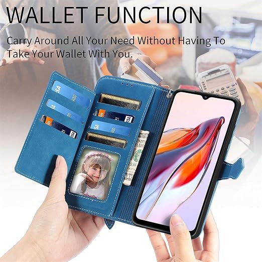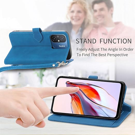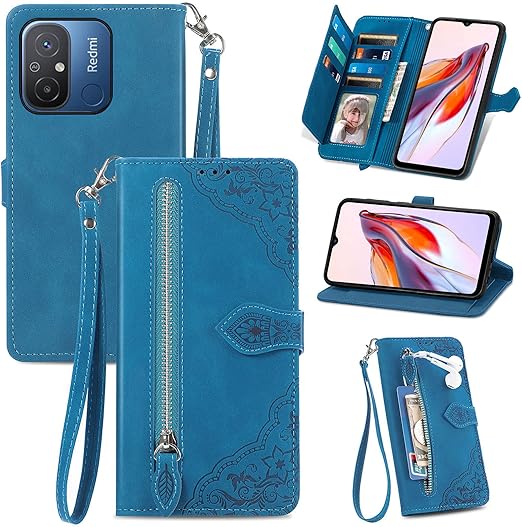対応Xiaomi Redmi 12C ケース 手帳 カードケースマグネット 携帯カバー カードポケット 財布型 カード入れ スタンド機能 カバー スマホケース 男女兼用(ブルー) a