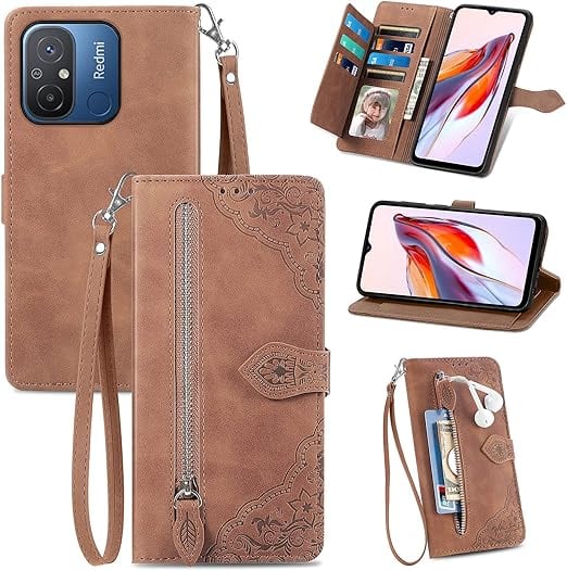 対応Xiaomi Redmi 12C ケース 手帳 カードケースマグネット 携帯カバー カードポケット 財布型 カード入れ スタンド機能 カバー スマホケース 男女兼用(ダークブラウン) a