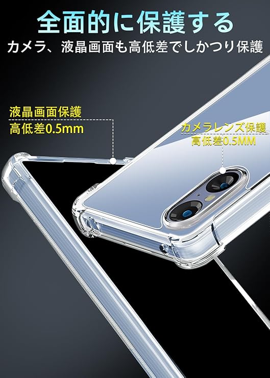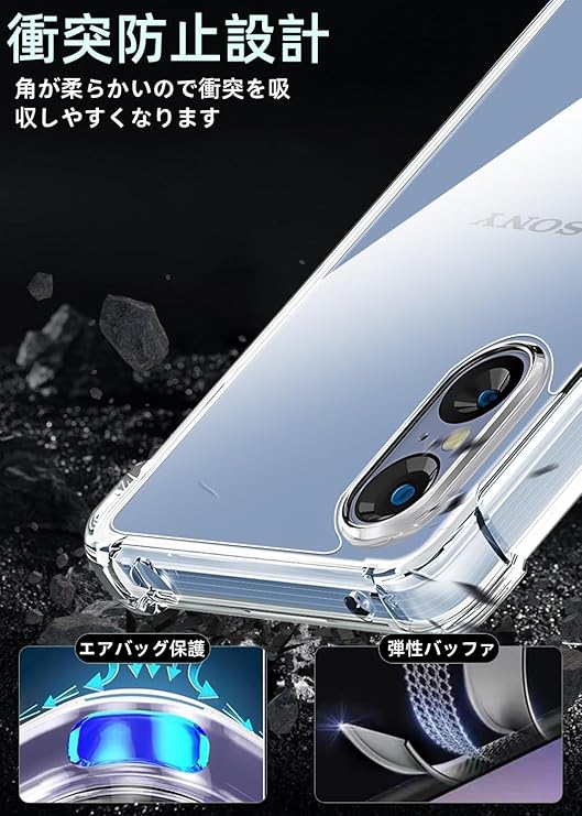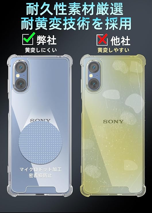【対応機種】Xperia 5 V 専用ケース。最新の黄変防止技術及び材料(PC+TPU新素材)の使用,より長時間キレイで透明な使用感をご提供します。