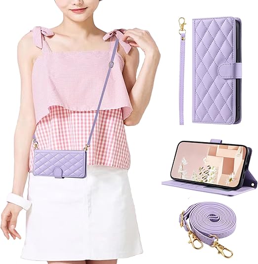 Xiaomi 13t pro ケース 手帳型 Xiaomi 13T スマホケース 手帳型 ストラップ付 エレガントで ある シャオミー 13T ケース 【Mldjomid】 シャオミー 13T プロ スマホケース PUレザー スタンド機能 カード収納 ストラップ付き チェック柄 刺繍 Xiaomi 13T/ Xiaomi 13T pro ケース 財布型 (紫 a