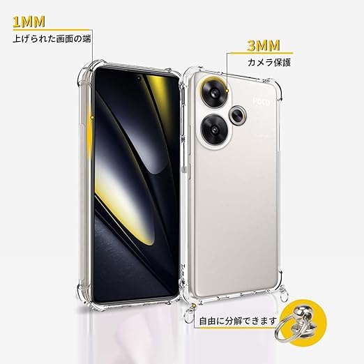 Xiaomi POCO F6 用 ケース カバー 軽量 TPU ソフト クリア 肩掛け 首かけ 調節可能 紐付き 取り外し可能 【NOUKAJU】For Xiaomi POCO F6 スマホケース ストラップ付き ショルダーストラップ 長さ調整可能 なワイヤレス充電邪魔ない a