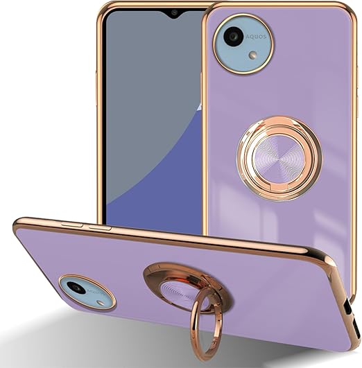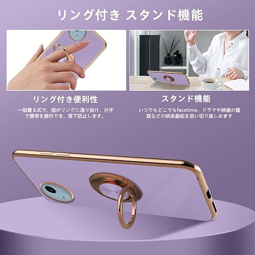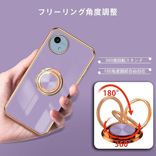 LuFiYa AQUOS wish4 | SH-52E 用 ケース リング付き カバー TPU素材 スタンド機能 アクオス wish4 スマホケース 軽量 耐衝撃 薄い 擦り傷防止 落下防止 車載ホルダー 360°回転 ケース AQUOS wish4 対応 (紫色) a