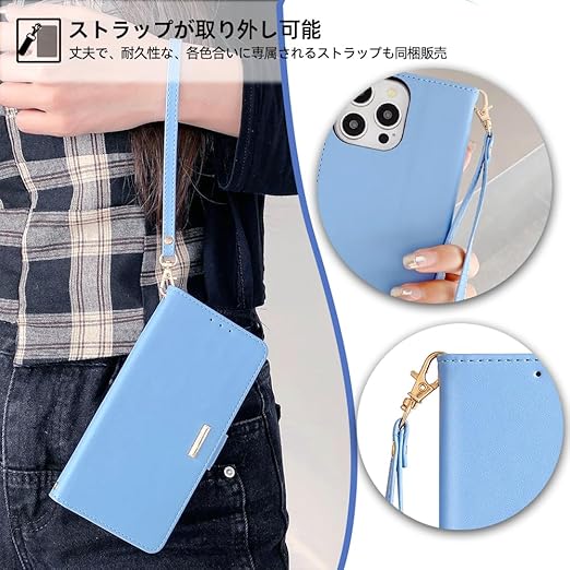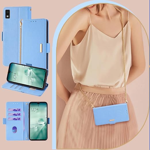 Aquos Wish3 ケース アクオスwish3ケース sh-53d ケース aquos wish3 ケース ショルダー ストラップ付き aquos ィッシュ3 ケース スタンド機能 カード収納 耐衝撃 リストストラップ付き WISH 3 スマホケース おしゃれ 女性 のあるメタルバックル ONETHEFUL アクオスウィッシュ3 カバー 斜め掛け - ライトブルー a