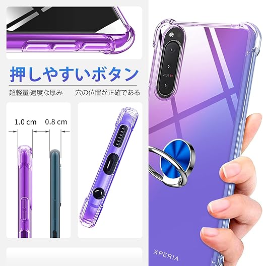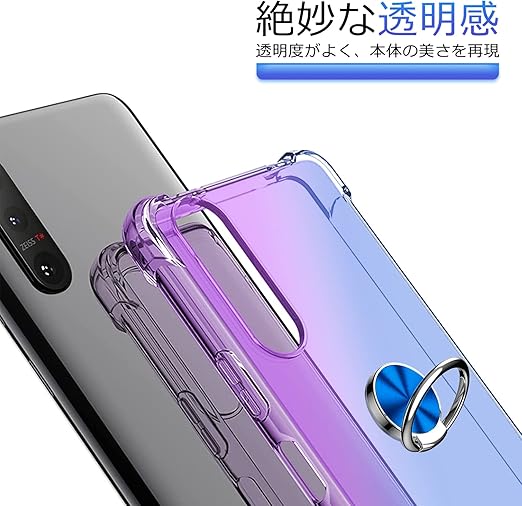 Xiaomi Redmi 9T ケース リング クリア 透明 スリム 薄型 TPU Redmi 9T カバー 耐衝撃 クリア 透明 スリム 薄型 グラデーション スタンド機能 車載ホルダー TPU 黄変防止 指紋防止 防塵 滑り防止 人気 携帯カバー 紫+青D634-HM 9T-06 a