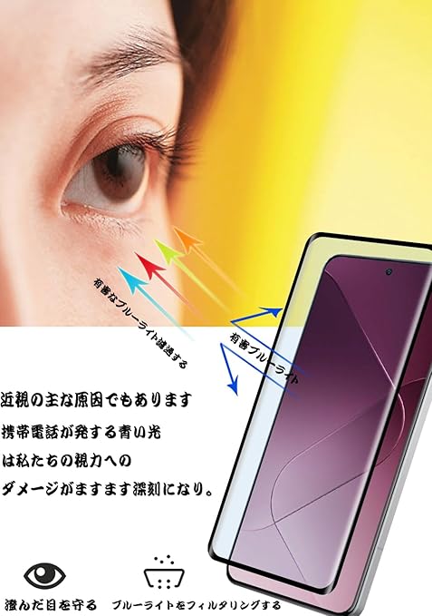 【ブルーライトカット】最新ブルーライトカット反射技術により93%のブルーレイを有効的にフィルタリングでき、目に掛かる負担を軽減し、視力障害を拒否します。長い時間使っても目が疲れません。効果的に近視を予防でき、ディスプレイを長時間眺める方に効果を発揮します。ブルーライトカット商品ですので、特徴な構造で画面は角度によって、淡い黄色、青紫色に見えます。予めにご了承ください。