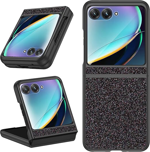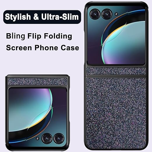 NINKI適応Moto Razr 2024用ケース キラキラ光る 人気 おしゃれ レディース かわいい 液晶保護フィルム付き PC+レザー ダイヤモンド 折りたたみ 手触り良き 滑り止め 耐衝撃 デザイン Moto Razr 50 ケース (ブラック) a