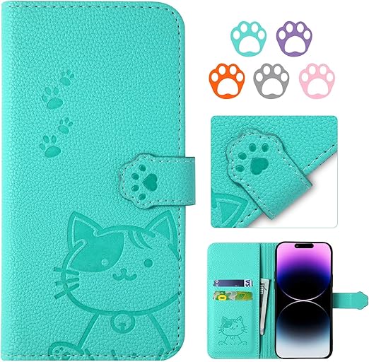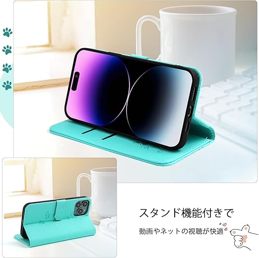 【YIMASE 対応 Xiaomi Poco F6 Pro 5G ケース 手帳型 】Redmi K70 Pro ケース/Redmi K70 ケース 手帳型 すべてのコントロールと機能に正確かつ簡単にアクセス Xiaomi Poco F6 Pro ケース 手帳型 Xiaomi Poco F6 Pro 手帳型ケース スタイリッシュでかわいい猫柄の Poco F6 Pro スマホケース -グリーン a