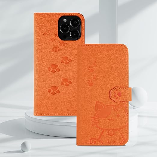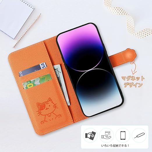 【YIMASE 対応 Xiaomi Poco F6 Pro 5G ケース 手帳型 】Redmi K70 Pro ケース/Redmi K70 ケース 手帳型 すべてのコントロールと機能に正確かつ簡単にアクセス Xiaomi Poco F6 Pro ケース 手帳型 Xiaomi Poco F6 Pro 手帳型ケース スタイリッシュでかわいい猫柄の Poco F6 Pro スマホケース -オレンジ a