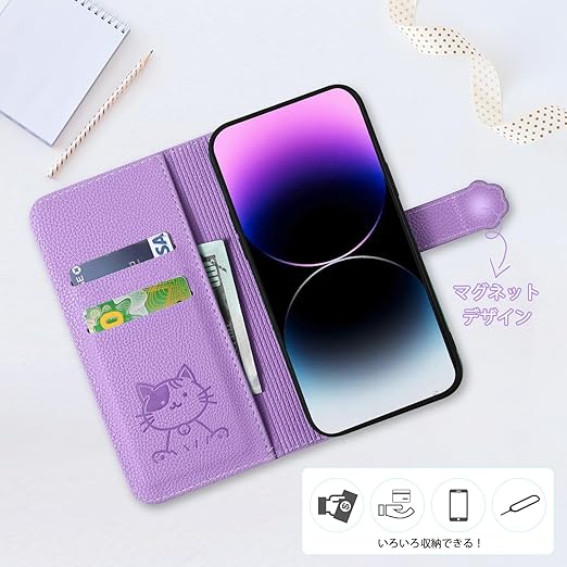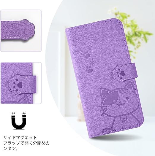 【YIMASE 対応 Xiaomi Poco F6 Pro 5G ケース 手帳型 】Redmi K70 Pro ケース/Redmi K70 ケース 手帳型 すべてのコントロールと機能に正確かつ簡単にアクセス Xiaomi Poco F6 Pro ケース 手帳型 Xiaomi Poco F6 Pro 手帳型ケース スタイリッシュでかわいい猫柄の Poco F6 Pro スマホケース -パープル a