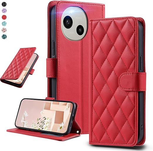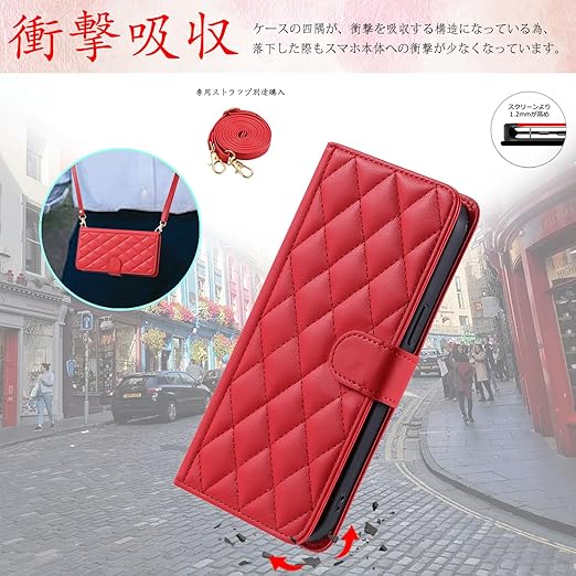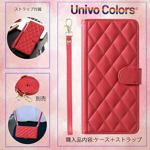 UnivoColors SHARP AQUOS R9(SH-51E)キルティングレザー調 手帳型ケース エレガント 高質PU マグネット開閉式 カード収納機能 スタンド機能 液晶全面保護 レンズ保護 ストラップ付属(レッド) a