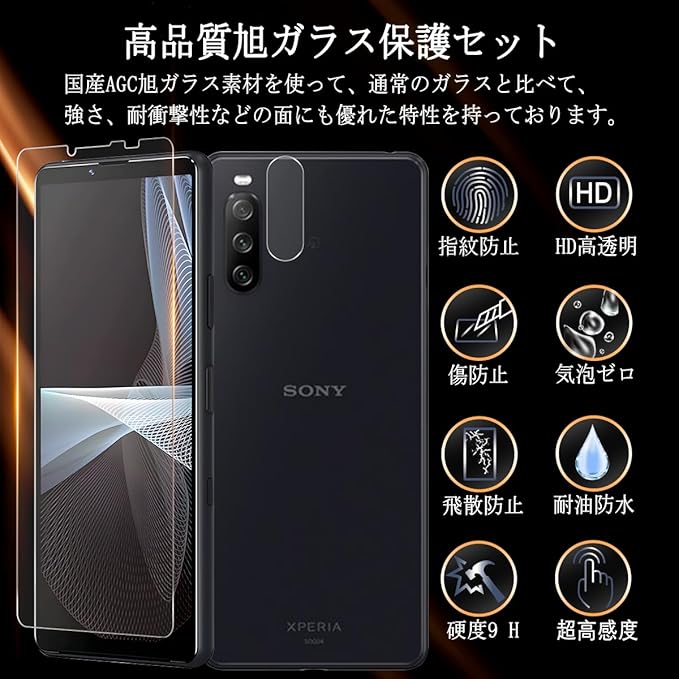 【2+2枚セット】 Snakehive 国産旭硝子素材製 強化ガラス Xperia 10 III SO-52B SOG04 / Xperia 10 iii Lite ガラスフィルム エクスペリア 10 III カメラフィルム カバー 保護フィルム SNKXP10IIITM a