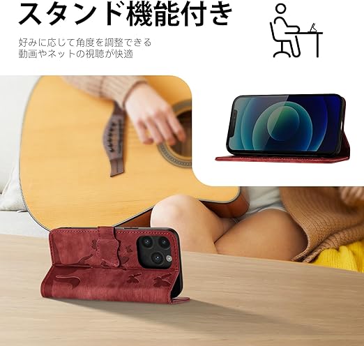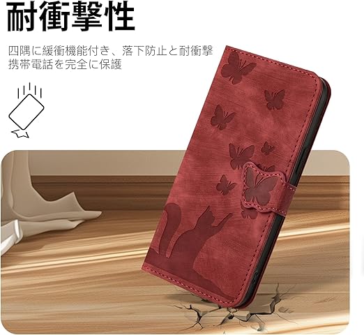 QANKISIS redmi note 13 pro 5g ケース 手帳型 redmi note 13 pro 5g ケース 高級PU xiaomi redmi note 13 pro 5g ケース 可愛らしい子猫柄や蝶柄 全面保護 財布型 redmi note 13 pro 5g ケース 手帳型 耐衝撃 レドミノート13pro5g ケース レッド a