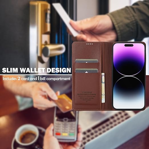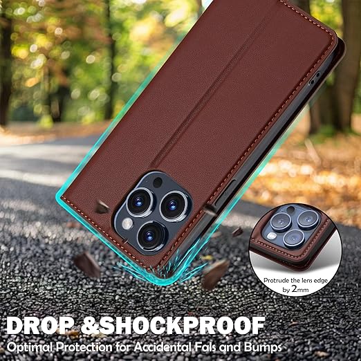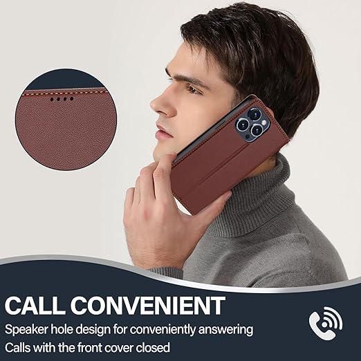 for iPhone 15 Pro ケース 手帳型 アイフォン 15 プロ 手帳 ケース 高級PUレザー マグネット式 カード収納 横置きスタンド機能 携帯カバー 肌触り良い 薄型 軽量 防水 耐摩擦シンプル 全面保護 ケースカバー 耐衝撃 ダークブラウン a