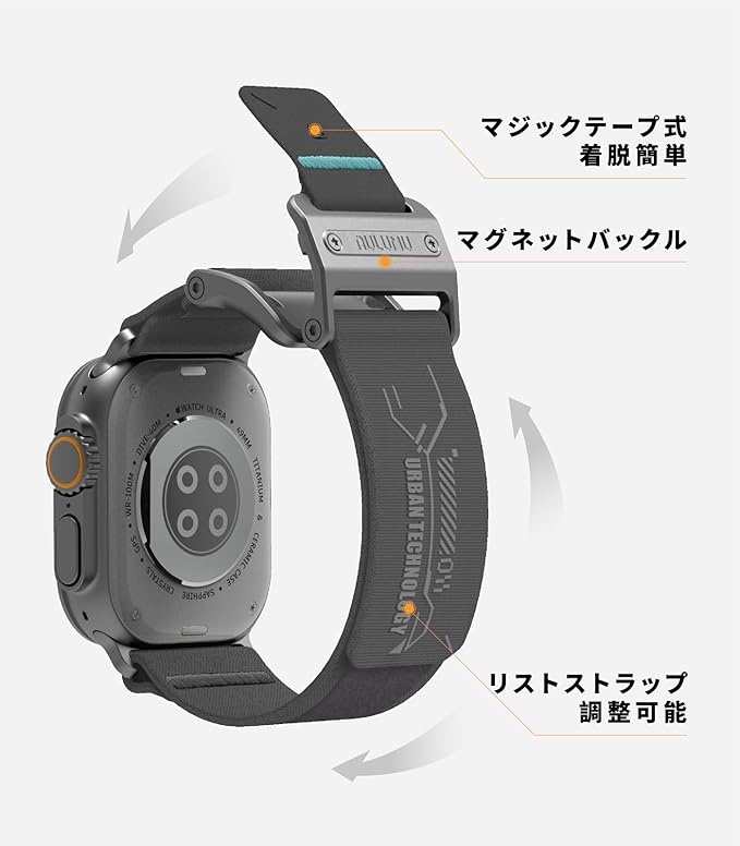 [Aulumu] A11 Apple Watch バンド マグネット|アップルウォッチバンド|Apple Watch Ultra 3/2/1 (49mm),Series 11/10 (46mm),9/8/7 (45mm),SE 3/2/1/Series 6/5/4 (44mm),Series 3/2/1 (42mm) 対応|ステンレススチール製マグネット式|1秒着脱・長さ調整可能 d