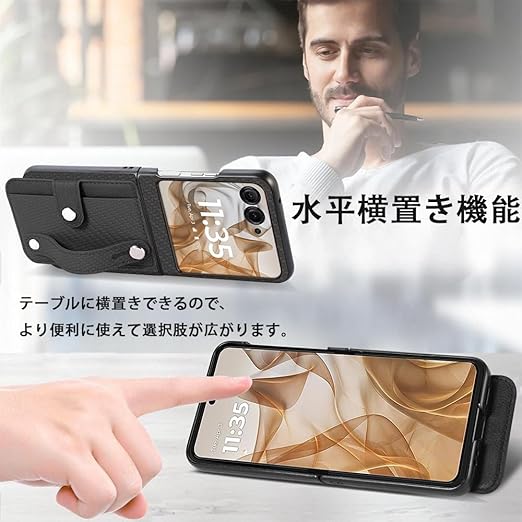 For Motorola Razr 50 / 50s / 60 ケース 保護カバー【SHANCHI】耐衝撃 カード収納機能 レンズ保護 PU皮革 ケース 指紋防止 (ブラック) a