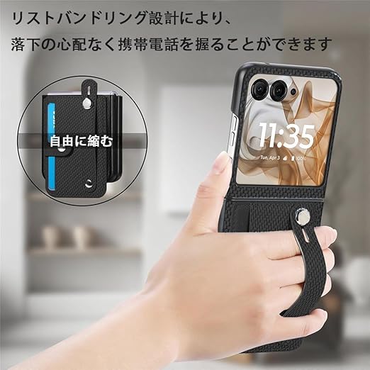 【リストバンド設計】リストバンドリング設計により、落下の心配なく携帯電話を握ることができます
