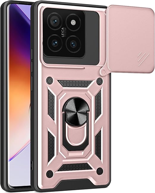 Xiaomi 14T Pro ケース『AFINER』新型 TPU+PC カバー リング 360度回転 スタンド機能 車載ホルダー対応 レンズ保護 Xiaomi 14T Pro 専用 耐衝撃 衝撃吸収 指紋防止 擦り傷防止 着脱簡単 (ローズゴールド) a