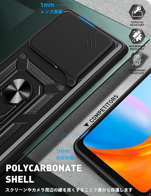『保護性能』 PCバック+TPUバンパー+金属ホールリング、内側TPU素材とハードPCフレームで制作するため、耐久性に優れた、外 部からの衝撃を内部に吸収されて、側に滑り止めの設計で、落下を防止にできます