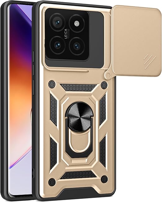 Xiaomi 14T Pro ケース『AFINER』新型 TPU+PC カバー リング 360度回転 スタンド機能 車載ホルダー対応 レンズ保護 Xiaomi 14T Pro 専用 耐衝撃 衝撃吸収 指紋防止 擦り傷防止 着脱簡単 (ゴールド) a