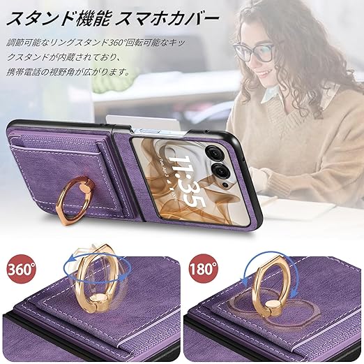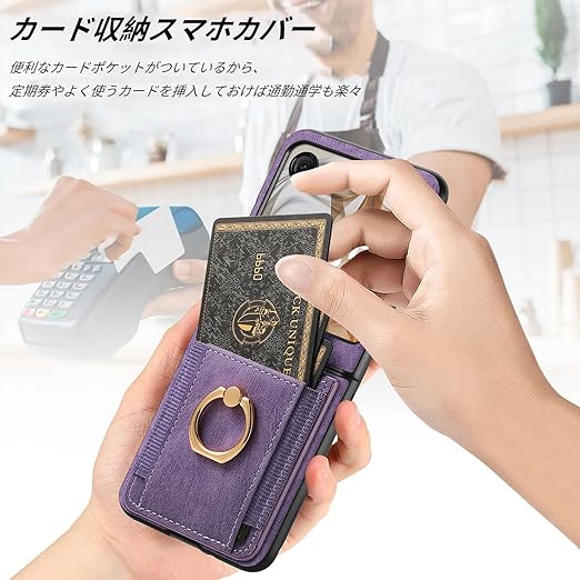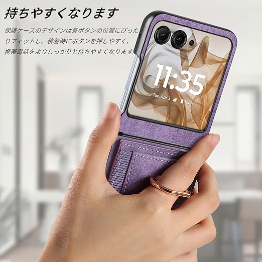 For Motorola(モトローラ) moto razr50 Ultra 用 ケース Motorola moto razr50 Ultra 用 カバー 【NOUKAJU】 カードポケット付き 高級 PUレザー 手触りが良い 落下防止 衝撃吸収 耐摩擦 全面保護 耐磁性RFID機能 マグネット式 カード収納 スタンド機能 軽量 薄型 ストラップ付き スマホケース (パープル) a