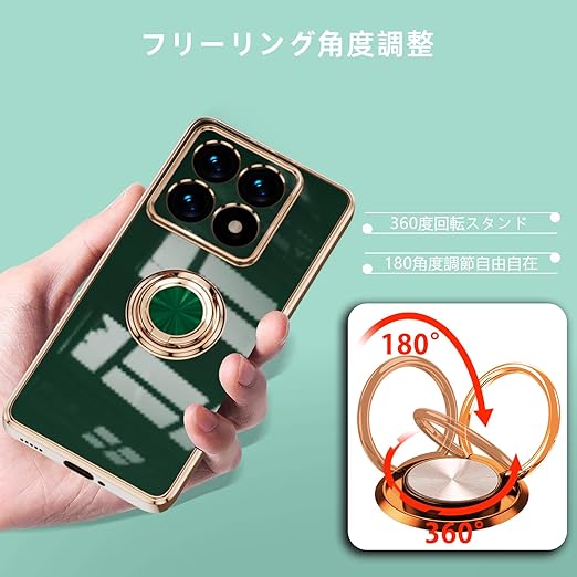 LuFiYa スマホケース Xiaomi 14T Pro 5G 用 ケース リング付き カバー TPU素材 スタンド機能 14T Pro スマホケース 軽量 耐衝撃 落下防止 車載ホルダー ケース Xiaomi 14T Pro 5G 対応 (グリーン) a