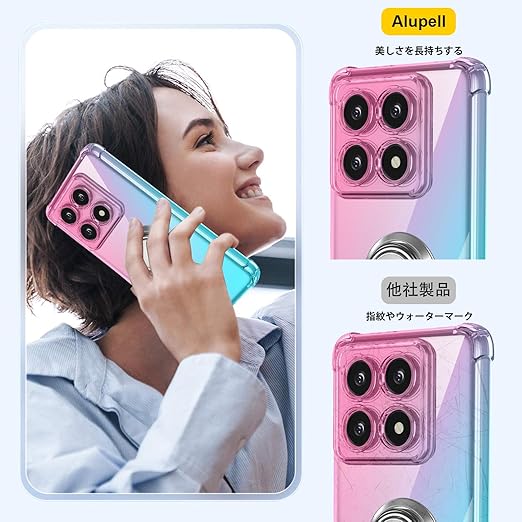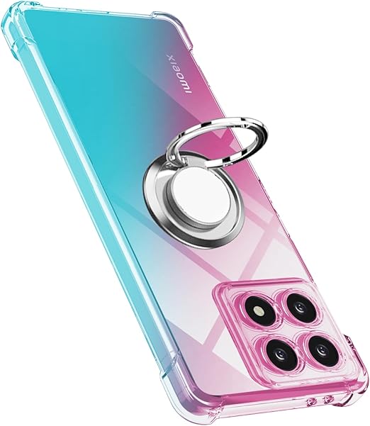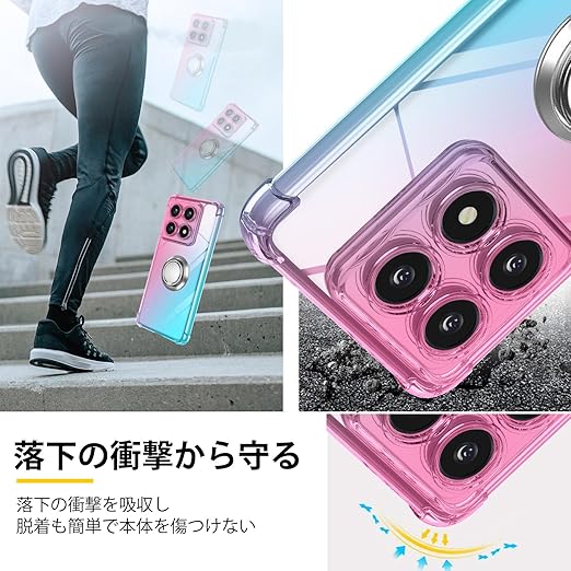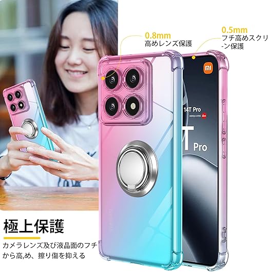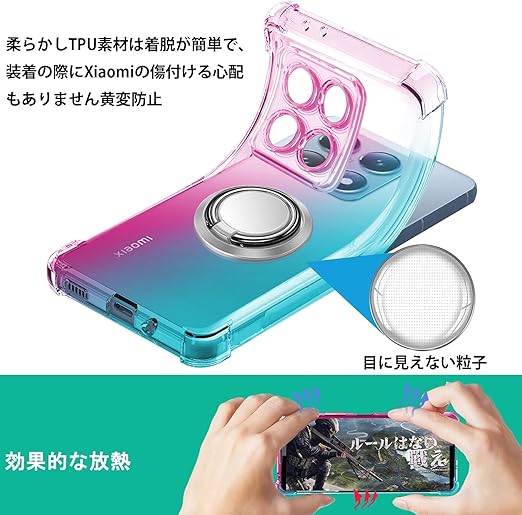 Xiaomi 14T Pro ケース リング TPU 薄型 軽量シリコン グラデーション色 ケース 耐衝撃 指紋防止 車載ホルダー対応 防塵 一体型 人気 携帯カバー(ピンクグリーン) a