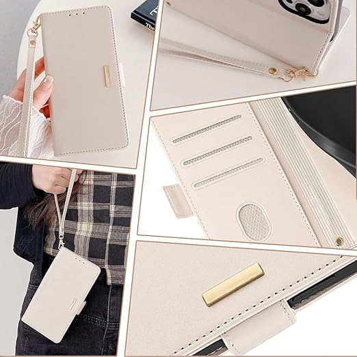 RanBluu コンパチブル Xiaomi 14T ケース 手帳型 シャオミ 14t 用 レザーケース 携帯カバー スマホケース 財布型 カード収納 マグネット開閉 カメラ保護 横置きスタンド機能 ストラップ付き 耐摩擦 耐衝撃 全面保護(Xiaomi 14T 対応 アイボリー) a