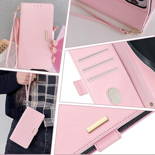 RanBluu コンパチブル Xiaomi 14T ケース 手帳型 シャオミ 14t 用 レザーケース 携帯カバー スマホケース 財布型 カード収納 マグネット開閉 カメラ保護 横置きスタンド機能 ストラップ付き 耐摩擦 耐衝撃 全面保護(Xiaomi 14T 対応 ピンク) a