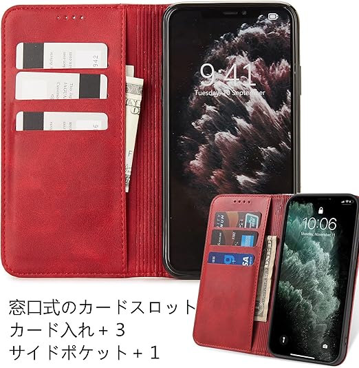 【素材】:鮮やかな色合いを避けて落ち着いたPUレザーを採用し、汚れにくくて触感が優しい素材です。インナーケースは柔軟なTPUホルダーです、装着が簡単で本体を傷つける心配はありません。衝撃吸収機能も良くて、しっかりと端末を守り抜きます。