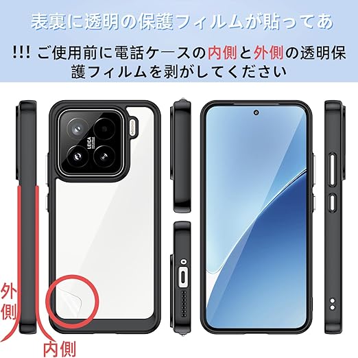 Xiaomi 15 ケース『AFINER』新型 軽量 超薄型 TPU+PC 透明 カバー Xiaomi 15 専用 耐衝撃 衝撃吸収 指紋防止 擦り傷防止 レンズ保護 着脱簡単(ブラック) a