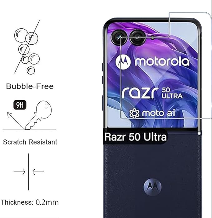 【2枚セット】For motorola razr 50 ultra/モトローラ Razr60 Pro [アウトディスプレイ用] ガラスフィルム 保護フィルム 【Moahsiuny】日本旭硝子製 高硬度9H 気泡防止 防指紋 耐衝撃 飛散防止 貼り付け簡単 画面鮮やか 自動吸着 a