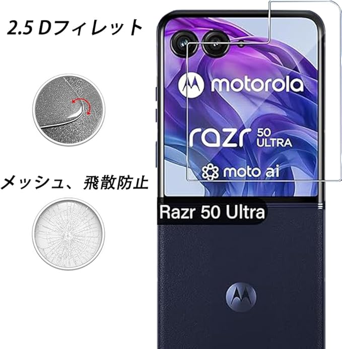 【対応機種】motorola razr 50 ultra / Razr60 Pro 液晶保護強化ガラスフィルム、2枚セット。