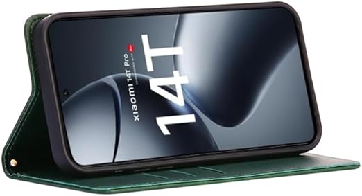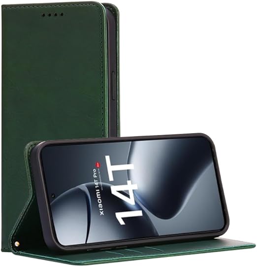 に適用する Xiaomi 14T Pro ケース 手帳型 手帳型ケース スマホケース カバー 手帳型 PUレザー カード収納 財布型 耐衝撃 ケース マグネット スタンド機能付き(濃い緑) a