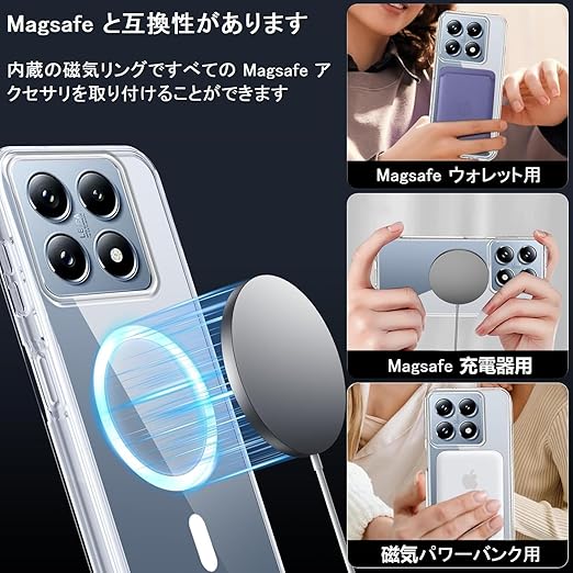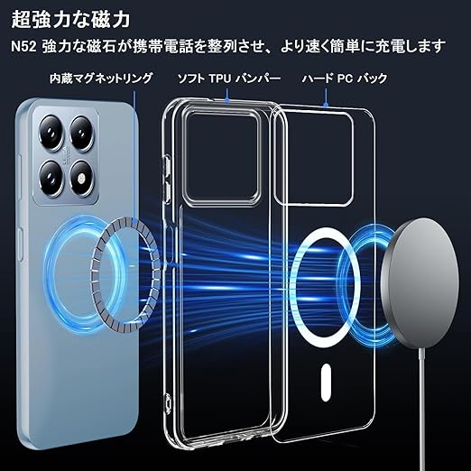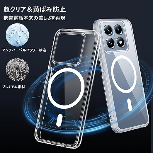 Xiaomi 14T 用 ケース 純透明のデザイン Magsafe対応 マグネット搭載 ワイアレス充電 クリアケース 米軍MIL規格取得 ハイブリット TPUバンパー PCマイクロドット加工 耐衝撃 黄ばみなし 指紋防止 擦り傷防止-クリア a