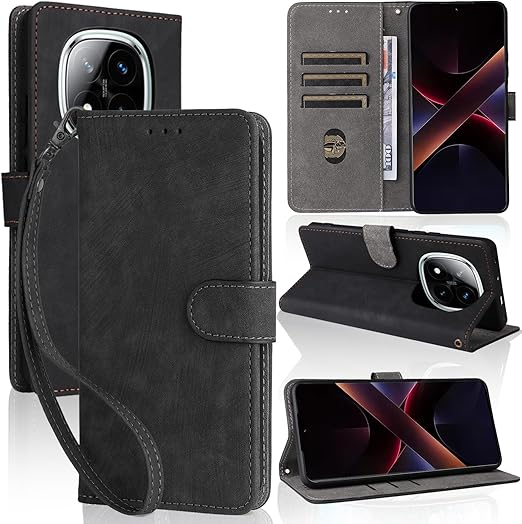 Redmi Note Pro 14 5G/Xiaomi POCO X7 用 ケース 手帳型 カバー 財布型 【NOUKAJU】 カードポケット付き 高級 PUレザー 手触りが良い 落下防止 衝撃吸収 耐摩擦 全面保護 耐磁性RFID機能 マグネット式 カード収納 スタンド機能 軽量 薄型 ストラップ付き スマホケース (ブラック) a