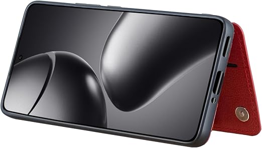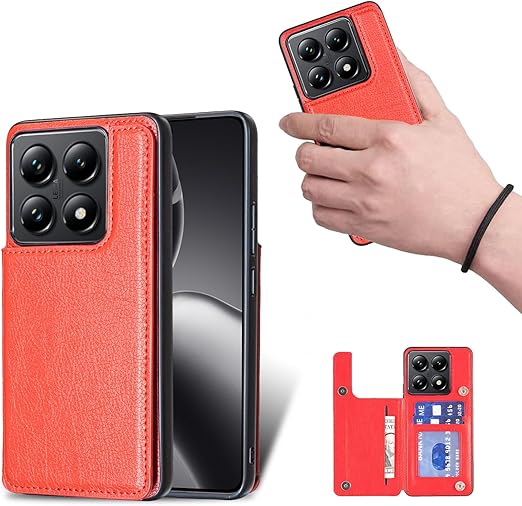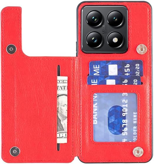 for Xiaomi 14T ケース スタンド機能 ケース ICカード収納 カード 背面カード収納 左と右の電話ケースを反転、シンプルなレトロなファッション、防水と防汚電話ホルダー、多機能財布収納付き、PUレザー、TPUソフトインナー(赤) a