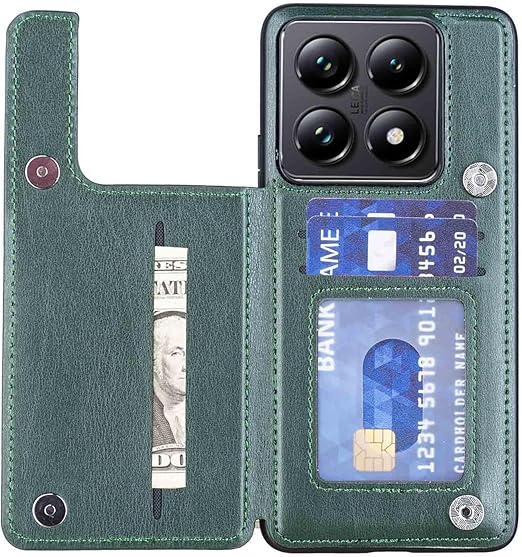 for Xiaomi 14T ケース スタンド機能 ケース ICカード収納 カード 背面カード収納 左と右の電話ケースを反転、シンプルなレトロなファッション、防水と防汚電話ホルダー、多機能財布収納付き、PUレザー、TPUソフトインナー (グリーン) a