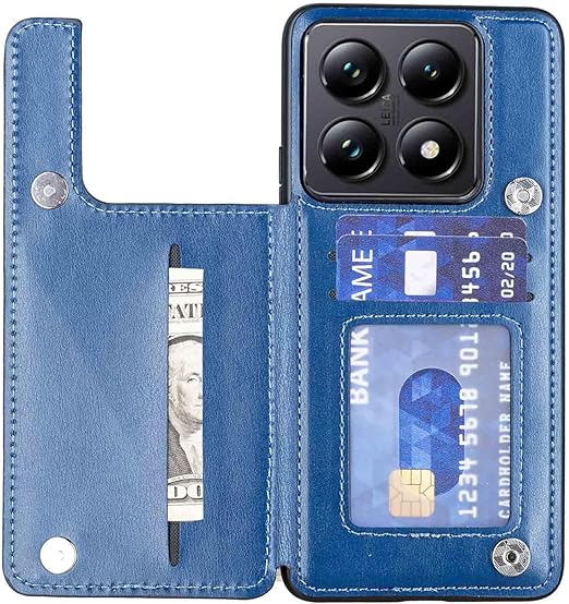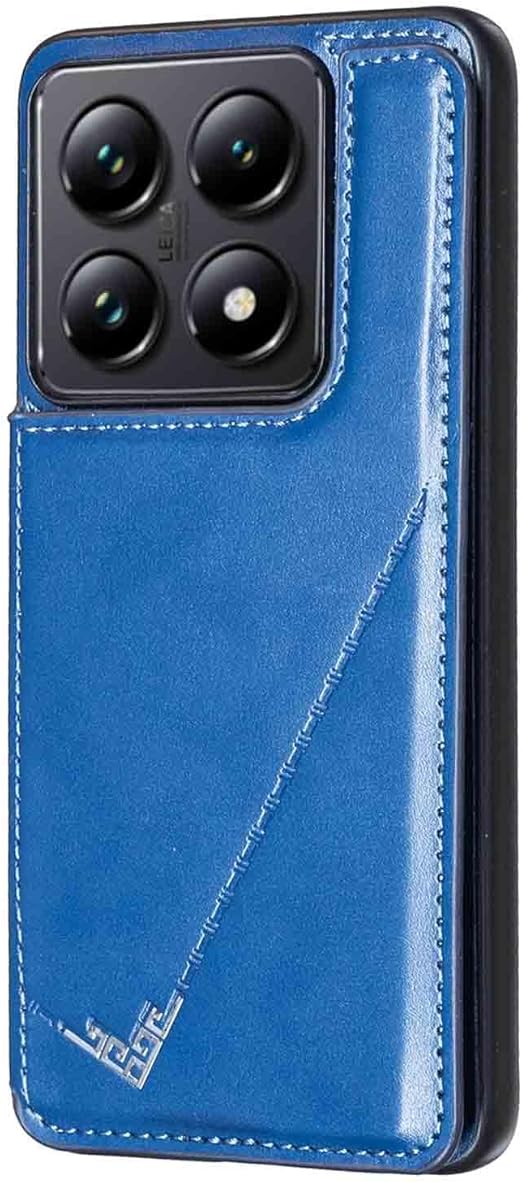 for Xiaomi 14T ケース スタンド機能 ケース ICカード収納 カード 背面カード収納 左と右の電話ケースを反転、シンプルなレトロなファッション、防水と防汚電話ホルダー、多機能財布収納付き、PUレザー、TPUソフトインナー (ブルー) a
