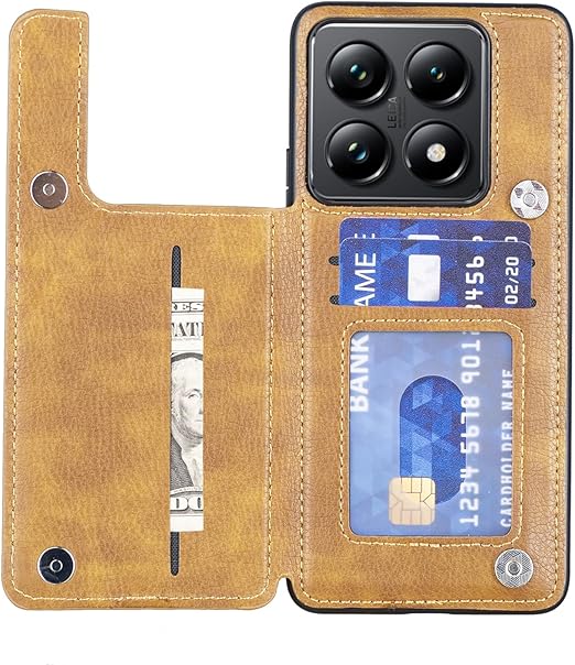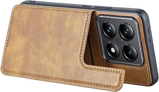 for Xiaomi 14T ケース スタンド機能 ケース ICカード収納 カード 背面カード収納 左と右の電話ケースを反転、シンプルなレトロなファッション、防水と防汚電話ホルダー、多機能財布収納付き、PUレザー、TPUソフトインナー(ブラウン) a