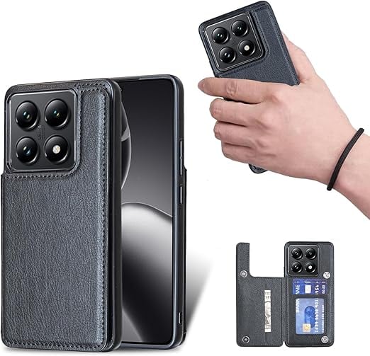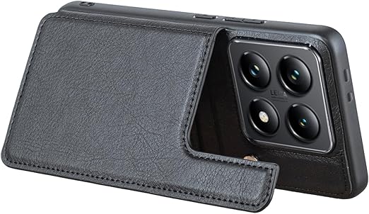 for Xiaomi 14T ケース スタンド機能 ケース ICカード収納 カード 背面カード収納 左と右の電話ケースを反転、シンプルなレトロなファッション、防水と防汚電話ホルダー、多機能財布収納付き、PUレザー、TPUソフトインナー(黒) a