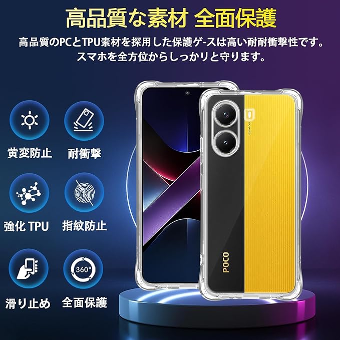 【対応機種】 Xiaomi POCO X7 Pro に適応しています。他のデバイスには対応しておりませんので、ご注文の際はご注意ください。シャオミ POCO X7 Pro 高品質TPU シリコン ケース。透明度が高く、携帯電話本体の美しさを完璧に見せる。無毒無味の高品質TPU素材採用、透明度を長期間維持できる。誤差のない精密設計でボタンが押しやすいながら、デバイスにフィットします。