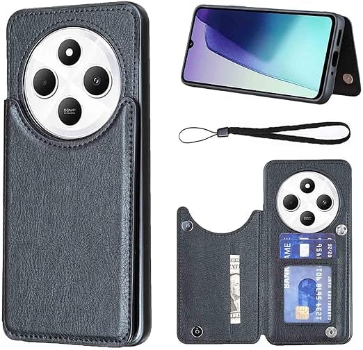 【Aqier】For XIAOMI Redmi 14C 用 ケース 背面手帳型 軽い薄い 純色 レザーケース(ブラック)シャオミ レッドミー14c ケースカード入れ 片手操作 バックカバー シャオミredmi14c 黒 a