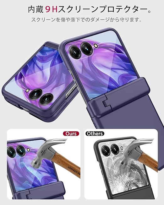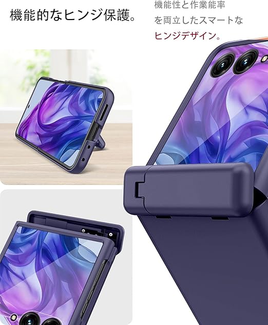Miimall 対応Motolora Razr 50/50s/60/Razr 2024/2025 ケース 手触り良い ガラスフィルム付き スタンド機能 耐衝撃 軽量 case 保護カバー バンパー モトローラ Razr 50 スマホカバー おしゃれ ヒンジ保護 ワイヤレス充電 落下防止 Moto Razr 50s 携帯ケース(ブルー) a